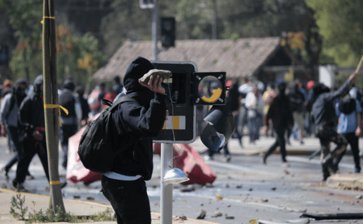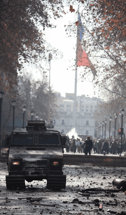 רכב משוריין של צ׳ילה במהלך שביתת סטודנטים. צילום: Getty Images