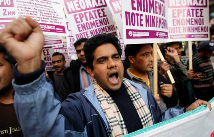 מחאה נגד התקפות גזעניות באתונה. צילום: AP