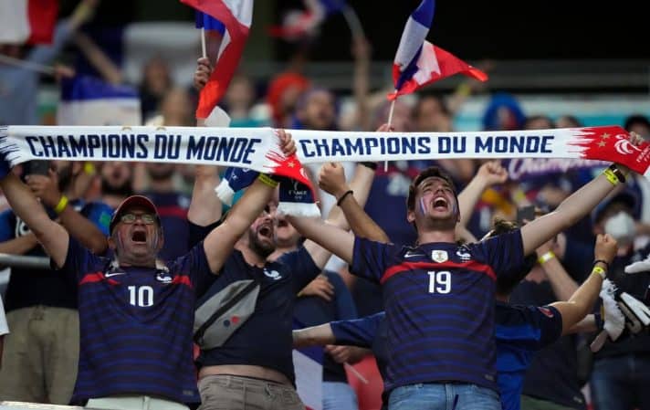 הלאומיות תמיד כאן: אוהדים צרפתים לפני משחק מול גרמניה ביורו 2020. צילום: AP