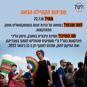 המחאה הציבורית החלה בעקבות הדיון בבג"ץ בעתירת בני הזוג ארד-פנקס נגד הוועדה לחוק ״נשיאת עוברים״, שלא חל על זוגות הומוסקסואלים.ב-11 ביולי פסקו שופטי בג״ץ כי המדינה תחויב לתקן את החוק בתוך חצי שנה לכל המאוחר, כך שיחול גם על גברים הומואים. המדינה הודיעה לבית המשפט כי תעשה זאת, אך בפועל, ימים לאחר הפסיקה, הקואליציה הפילה את התיקון לחוק - מה שהוציא כ-80 אלף איש לרחובות ב-22 ביולי.שביתת הקהילה הגאה לוותה בעשרות הפגות לאורך היום. כבר בבוקר המחאה נערכו הפגנות רבות ברחבי הארץ. במהלכן, מפגינים חסמו את מחלף השלום בתל אביב ובירושלים את כיכר פריז. שניים ממארגני ההפגנה בירושלים נעצרו על ידי המשטרה. ביום זה, הכריזו ההסתדרות וחלק מהמעסיקות הגדולות במשק כי יתמכו בשביתת עובדים להט"בים ולא ינכו יום חופש משכרם. חלק מהחברות אף הודיעו כי ישתתפו במימון פונדקאות בחו"ל לעובדיהם הלהט"בים בעלות עשרות אלפי שקלים לעובד.