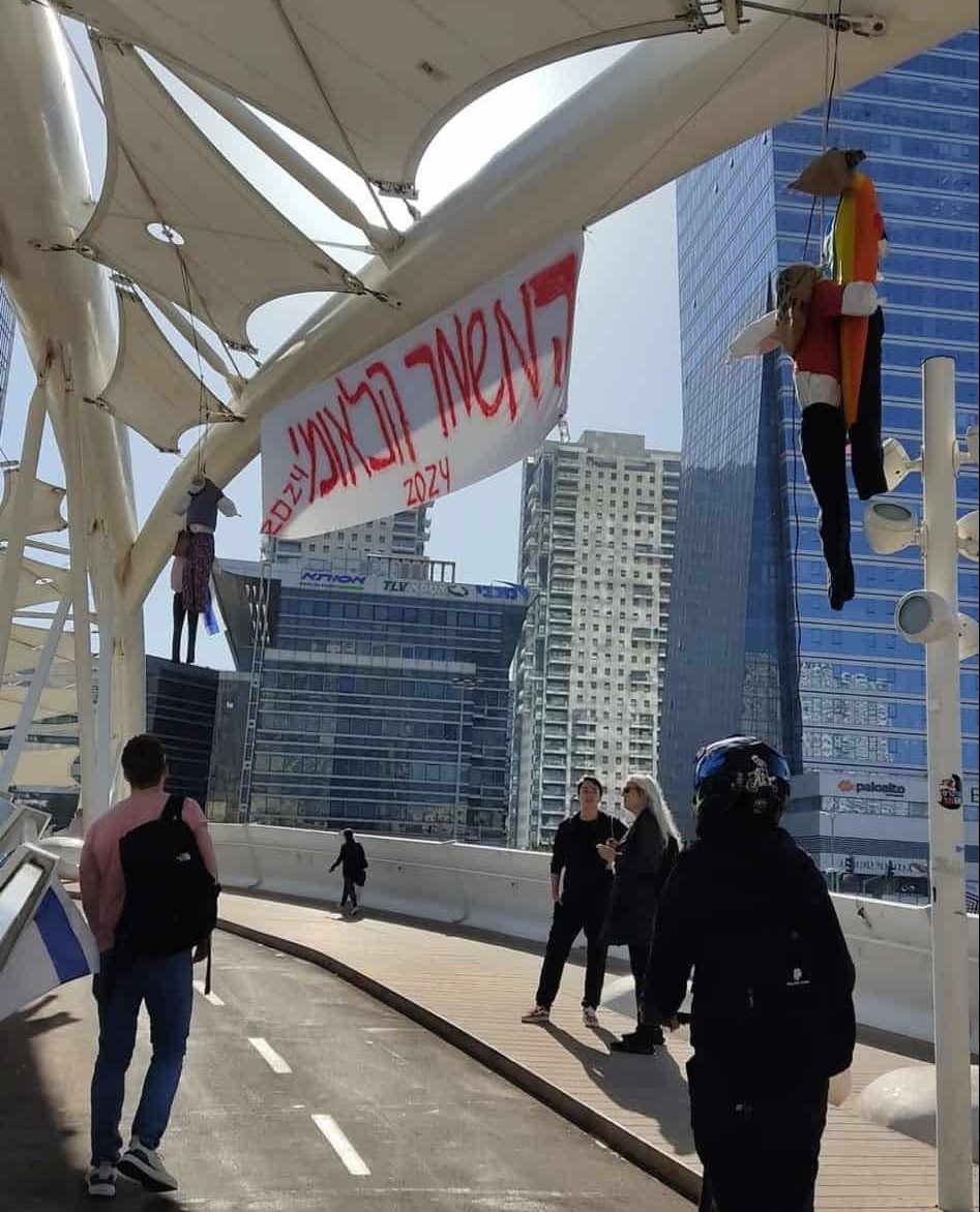 שם: גל (שם בדוי)דיי ג׳וב: סטודנטית לפסיכולוגיה ומנהלעומדת מאחורי: מיצג הגופות התלויות בגשר יהודיתובעוד כמה מילים…״הרעיון למיצג הזה בא אחרי נאום שכתבתי על פחדים מהמצב ומאבקים שיש לעשות. חשבתי על חברים שלי, על מה שאני רוצה עבורם ועל מה שעלול לקרות להם, ניסיתי לחשוב מי מהם יפגע במחאה או בעתיד המתהווה רק בגלל מי שהוא - אז הקדמתי תרופה למכה - ותליתי אותם״.למה יזמת את כל זה?״אחרי אלימות קשה ושורת מעצרים שבוצעו בשבועות האחרונים, תפסתי את ההכרזה על הקמת המשמר הלאומי כהכרזה על הקמת צבא פרטי של שר שהתבטא לא פעם נגד קהילת הלהט״ב, נגד נשים, נגד מפגינים, שיוכל לאפשר (או לכל הפחות לא למנוע) הוצאה להורג של כל מי שלא יצטרף לשורותיו של אותו שר. שמאלנים בוגדים? סרבנים בוגדים? כשבגידה היא פשע שבגינו אפשר להוציא אדם להורג, עם צבא פרטי ובלי בג״ץ - נראה לי שכולנו רואים את התליין״.מה עוד צריך לעשות לדעתך?״אנחנו במלחמה לא רק על ״דמוקרטיה - כן או לא״, אנחנו במאבק אמיתי על הפנים של המדינה, על עתידה. הגיע הזמן שגם אנחנו נקבע יעדים ונפסיק להתנצל ולהתקפל. יש לכם רעיון? תרימו אותו. יש מקום לכל יוזמה (כל עוד לא נפגעים אנשים כמובן)״.
