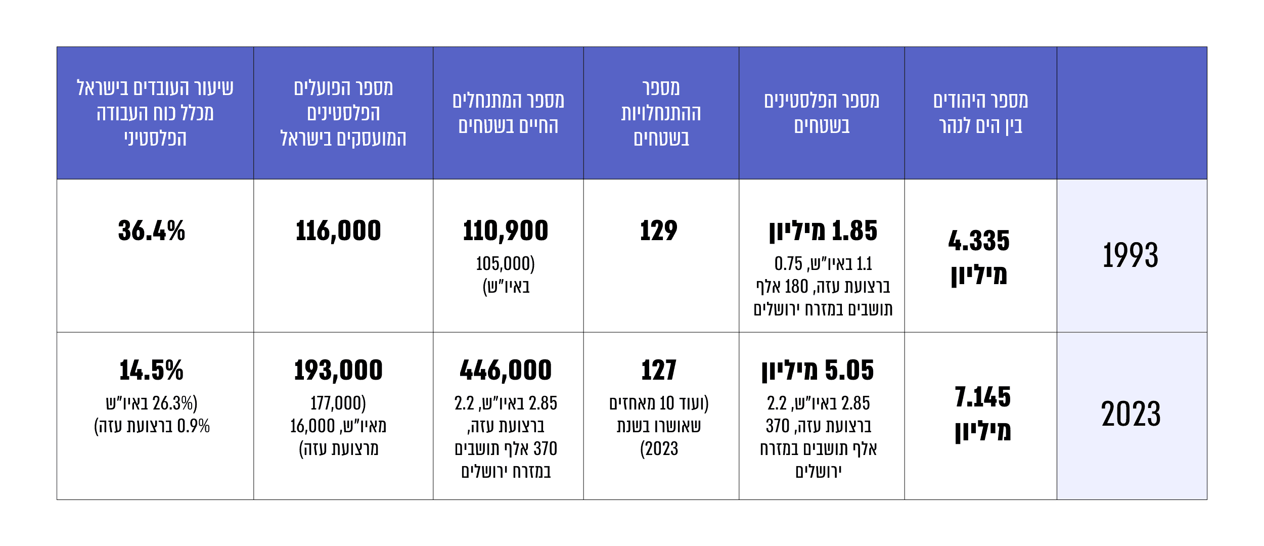 13 בספטמבר, יום השנה ה-30 לחתימה על הסכם אוסלו, מחזיר אותנו לצומת דרכים מרכזית בתולדות הסכסוך הישראלי-פלסטיני. הייתה זו הפעם הראשונה שבה הנהגות שני העמים הכירו זו בזו וגיבשו הסדר המבוסס על חלוקה טריטוריאלית של הארץ. בעקבות ההסכם נוסדה הרשות הפלסטינית – הישות המדינתית הפלסטינית הראשונה בשטח א"י-פלסטין ההיסטורית, אשר חולשת על הציבור שחי בו, גם אם לא זכתה למעמד של מדינה ריבונית.בכך, היה הסכם אוסלו לחריג מבין חמש ההכרעות האסטרטגיות שקידמה ישראל בנושא הפלסטיני מאז 1967. שתי ההכרעות שקדמו לו – סיפוח מזרח ירושלים ב-1967 וקידום מפעל ההתיישבות בשטחים – נעשו חד-צדדית, וכך גם השניים שבאו לאחריו: הקמת גדר הביטחון באיו"ש מאז 2002 והנסיגה מרצועת עזה ב-2005. בעוד ששני המהלכים הראשונים גילמו התפשטות טריטוריאלית ומיזוג גובר בין ישראל לפלסטינים, השניים האחרים שיקפו התכווצות והנחת חיץ בין שני העמים, הגיון שעמד גם בבסיסו של הסכם אוסלו. בהקשר הפנים-ישראלי, שיקף ההסכם תפנית חדה בפולמוס הנוקב שהתנהל מאז 1967 בסוגיית השטחים, ובמסגרתו ניצבו שתי תזות: הפשרה הטריטוריאלית, מבית מדרשו של יגאל אלון שחתר להניח חיץ פיזי בין ישראל לפלסטינים, תוך כדי סיפוח שטחים חיוניים באיו"ש וברצועת עזה ומבלי להתחייב לכינון מדינה פלסטינית; והפשרה הפונקציונלית שגיבש משה דיין, שעיקרה הימנעות מחלוקת הארץ, חתירה למיזוג כלכלי-מנהלתי של הפלסטינים בישראל, ושימור היציבות הביטחונית באמצעות מרקם חיים יציב. יצחק רבין, כפי שהודה בעצמו, היה חסיד תפיסתו של אלון, ושימש ראש הממשלה הראשון שקידם מהלכים ברוח התכנית שגיבש האחרון ב-1967."עידן אוסלו" היה רווי סערות, סבל משבריריות ולא זכה לקונצנזוס מלא בקרב שני העמים, אבל יסודותיו מתקיימים עד היום. הוא נמשך 7 שנים, מהחתימה על ההסכם ועד פרוץ האינתיפאדה השנייה בספטמבר 2000, אחד העימותים החריפים בין ישראל לפלסטינים מאז ומעולם. בעיני רבים, אותו עימות סימל את קריסת הדוקטרינה שהתבססה על שיח מדיני ואמונה בדבר התקדמות לפיוס היסטורי, ומנגד – את חזרת שני העמים ל"דיאלוג באמצעות אש". מאז, מתקיימת במערכת הפלסטינית מציאות שברירית המצויה בהידרדרות מתמדת: באיו"ש – קיפאון מדיני המלווה בגלי הסלמה ובמשברים תכופים בין ישראל לרשות הנחלשת בהדרגה; וברצועת עזה - "מלחמה קרה-חמה" עם חמאס ופלגי הטרור.וכך, בין הים לנהר התפתחה מציאות כלאיים הדומה לזירה ארכיאולוגית רבת שכבות. היא כוללת מגוון מצבים הארוגים זה בזה ומייצגים יוזמות אסטרטגיות והתנסויות היסטוריות שהחלו לקרום עור וגידים, אך נגדעו בעודם בעיבם. במסגרת הזאת מתקיימים בה בעת חמישה מצבים פוליטיים ומעמדות אזרחיים פלסטיניים: שטחי A באיו"ש שעליהם חולשת הרשות הפלסטינית, ומעמדם המדויק מעולם לא הוגדר סופית; אזורי B שבהם יש לפלסטינים אחריות אזרחית, ולישראל – שליטה ביטחונית; אזורי C שעליהם חולשת ישראל באופן מלא; רצועת עזה הנתונה תחת ממשל החמאס, כשמעמד התנועה כריבון והפלסטינים החיים באזור אינו ברור; תושבי מזרח ירושלים, שמאז 1967 נושאים מעמד של תושבים שאינם אזרחים; ולצד כל אלה, גם האזרחים הערבים בישראל. לאחר שהתנסו במגוון מערכות יחסים, שני העמים המותשים שוקעים במעין סטטוס קוו המבוסס על מתן עדיפות לפיתוח "הכאן והעכשיו". זוהי אינה מציאות הנגזרת מחשבון נפש מעמיק בקרב שתי הקהילות, קל וחומר מפיוס היסטורי, אלא הפוגה ספוגה בחשדנות ובעוינות הדדית שבמהלכה ממשיכה המציאות להשתנות, בעיקר נוכח הרחבת הנוכחות וההשפעה של ישראל באיו"ש, דבר שבעטיו גם מתעבה קו המגע בין שני העמים ומתהדקת מערכת הזיקות ביניהם. על רקע זה נוצר היתוך מוזר ולא לגמרי מודע או רצוני בין שתי קהילות רוויות ייאוש ואסקפיזם. הישראלים חסרי עניין ברובם במתרחש מעבר לקו הירוק, בין היתר נוכח המיקוד האינטנסיבי במשבר הפנימי המתמשך במדינה, ומונעים מכוח תפיסות קולקטיביות "מרגיעות" ולפיהן ניתן באמצעים כלכליים לבסס רגיעה ולהחליש כמיהות פו